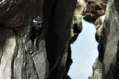 Casi sin darnos cuenta llegaremos a la cueva prometida, que no es más que el desmoronamiento de pequeñas y grandes rocas sobre la profunda grieta que no mide más de un metro y medio en ese sector. Apenas si se cuelan unos rayos de luz, pero entre los escondrijos hay una abertura de suficiente tamaño como para que cualquier persona pueda ingresar a un mirador desde donde podremos observar a las aves que, acostumbradas a las visitas, permanecen indiferentes a nuestra presencia.