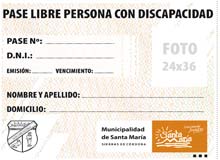 Continuamos brindando en nuestras oficinas el pase libre de transporte para las personas con discapacidad, para trasladarse dentro de la provincia de Córdoba con el vehículo municipal y el servicio urbano para santa María de Punilla.